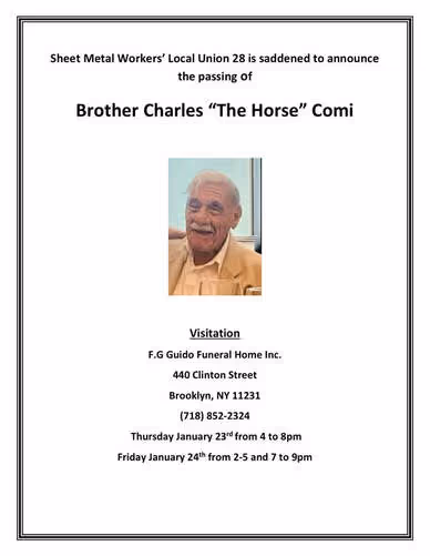 Local 28 is saddened to announce the passing of Brother Charles "The Horse" Comi.